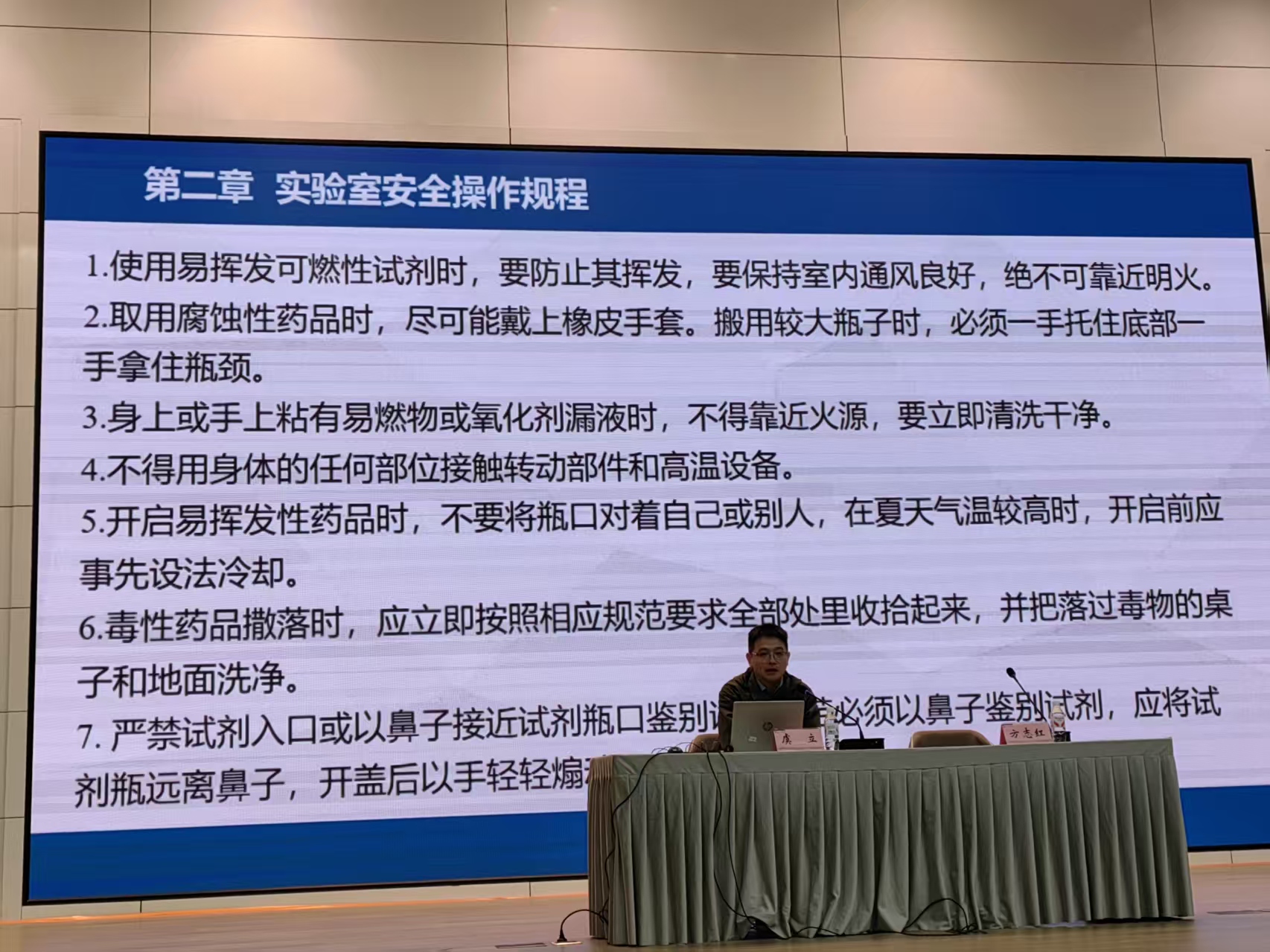 培训会特邀浙江中医药大学资产与实验室管理处副处长虞立博士担任主讲。虞立博士围绕实验室安全主题,系统讲解了实验室守则、安全操作流程、主要危险源及有害特性、消防基础知识、紧急救护常识、事故案例剖析以及常规检查要点等七大模块内容。通过理论讲解与真实案例相结合的方式,生动阐释了实验室安全管理的重要性和实操要点,进一步增强了师生的安全防范意识和应急处置能力。