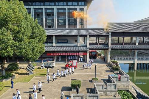 为进一步提升师生安全防范意识和应急处置能力,11月21日中午,学校在志廉楼南广场举行2025年实验室消防安全应急演练。本次活动由资产设备与实验室管理处、安全保卫部联合组织,纺织科学与工程学院承办,越城区消防救援大队、后勤管理处等多部门协同。校党委副书记黄坚、越城区消防救援大队副大队长金鸿飞现场指导,相关职能部门负责人、各二级学院实验室分管领导、实验室管理人员及师生代表等200余人参加演练观摩。